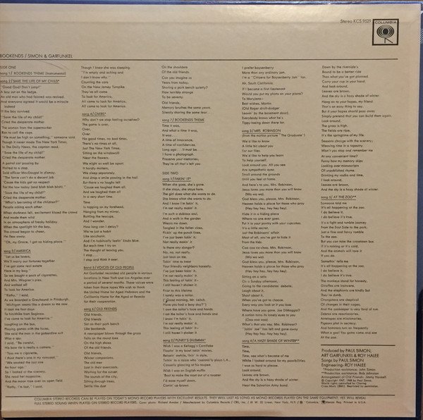 Some copies may be found with hype sticker: “Featuring the complete version of their hit Mrs. Robinson”.