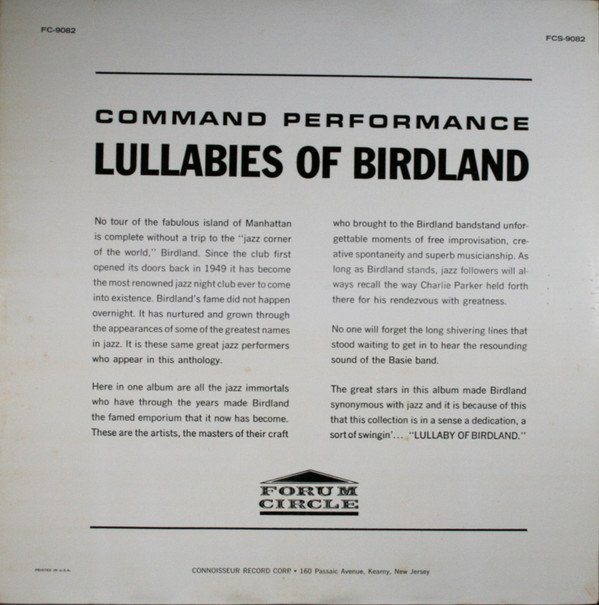 Various – Lullabies Of Birdland Command Performance